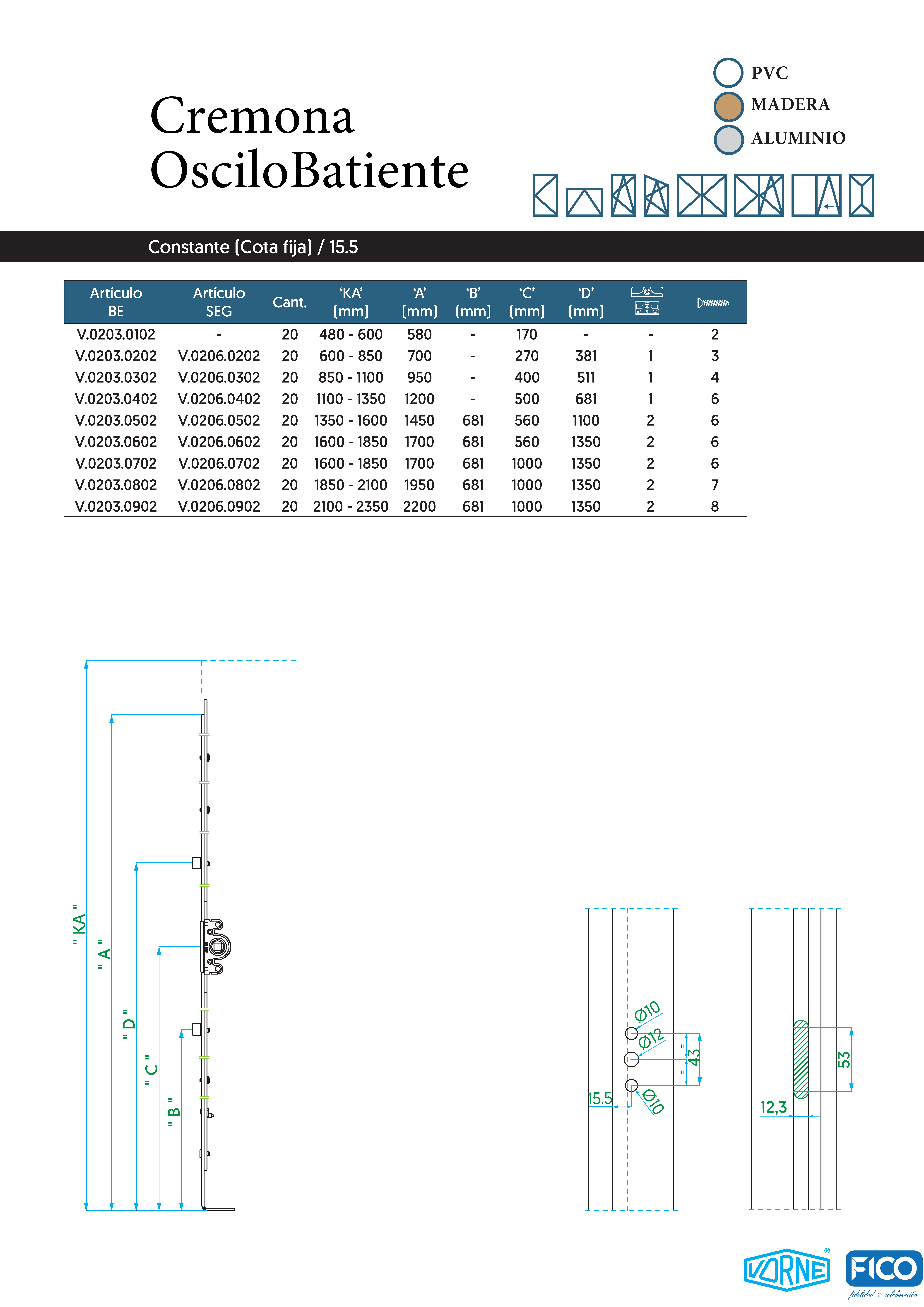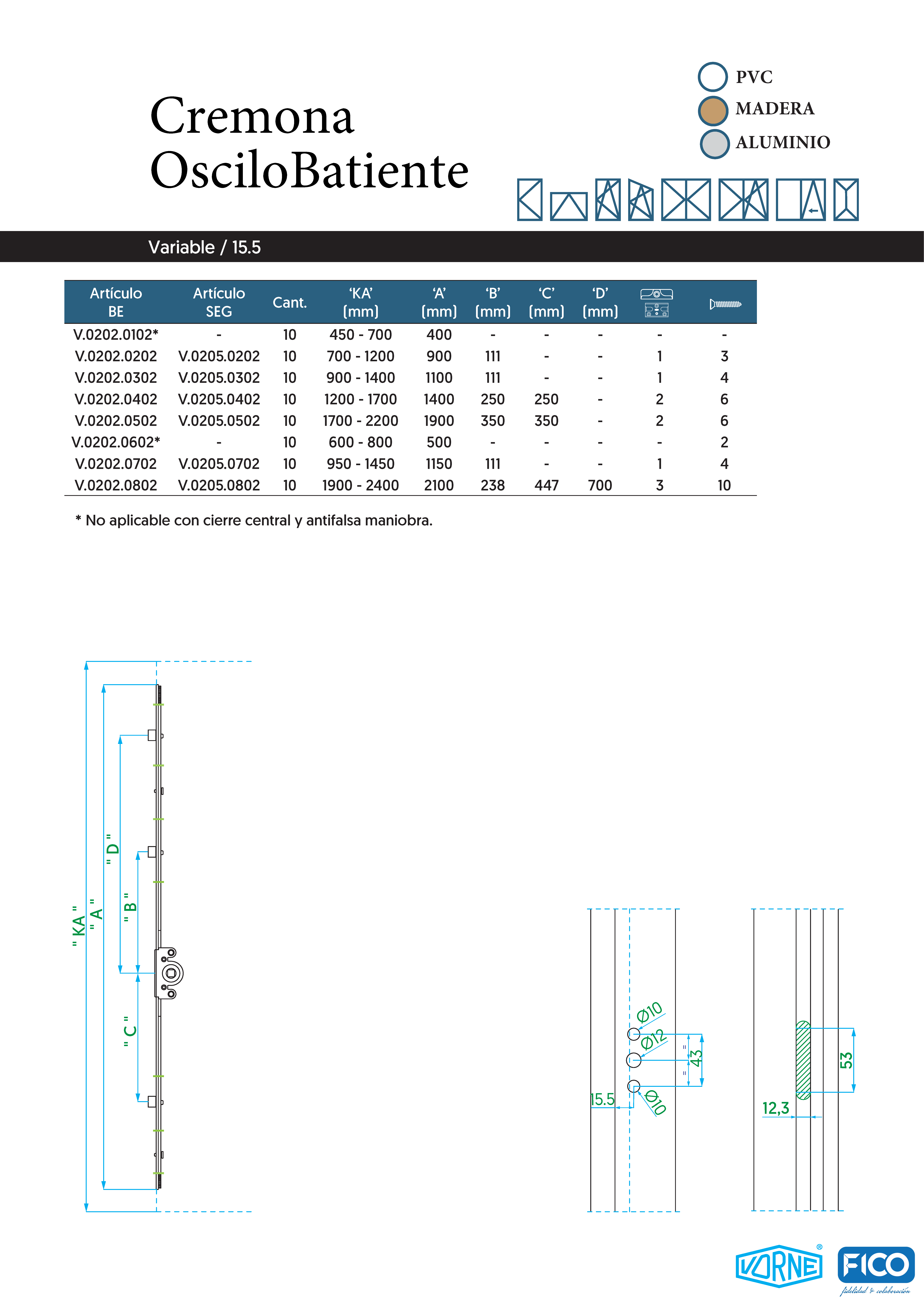 Cremona OsciloBatiente Cremona OsciloBatiente Cota Variable 7,5 Eje